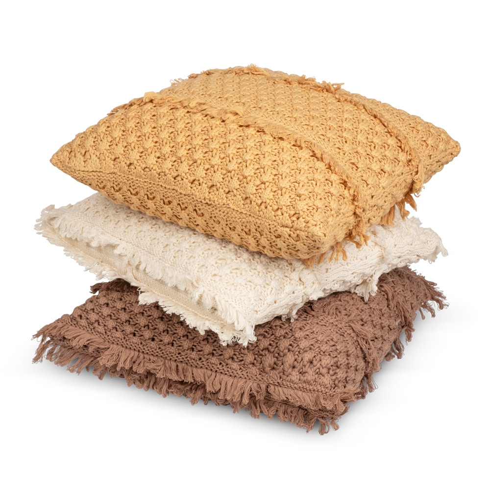 כרית סרוגה דוגמת פרנזים בצבע מוקה 50/50