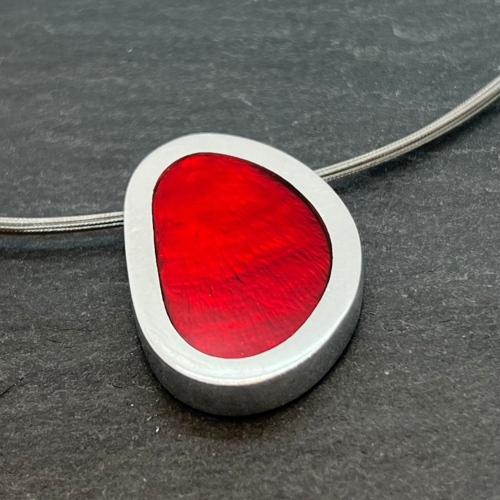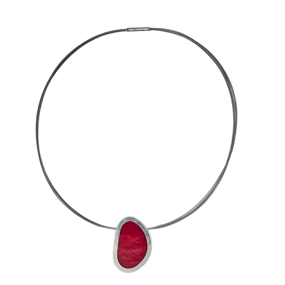 שרשרת דו צדדית עשויה מצדף ב-2 גווני אדום מצופים בשרף טבעי